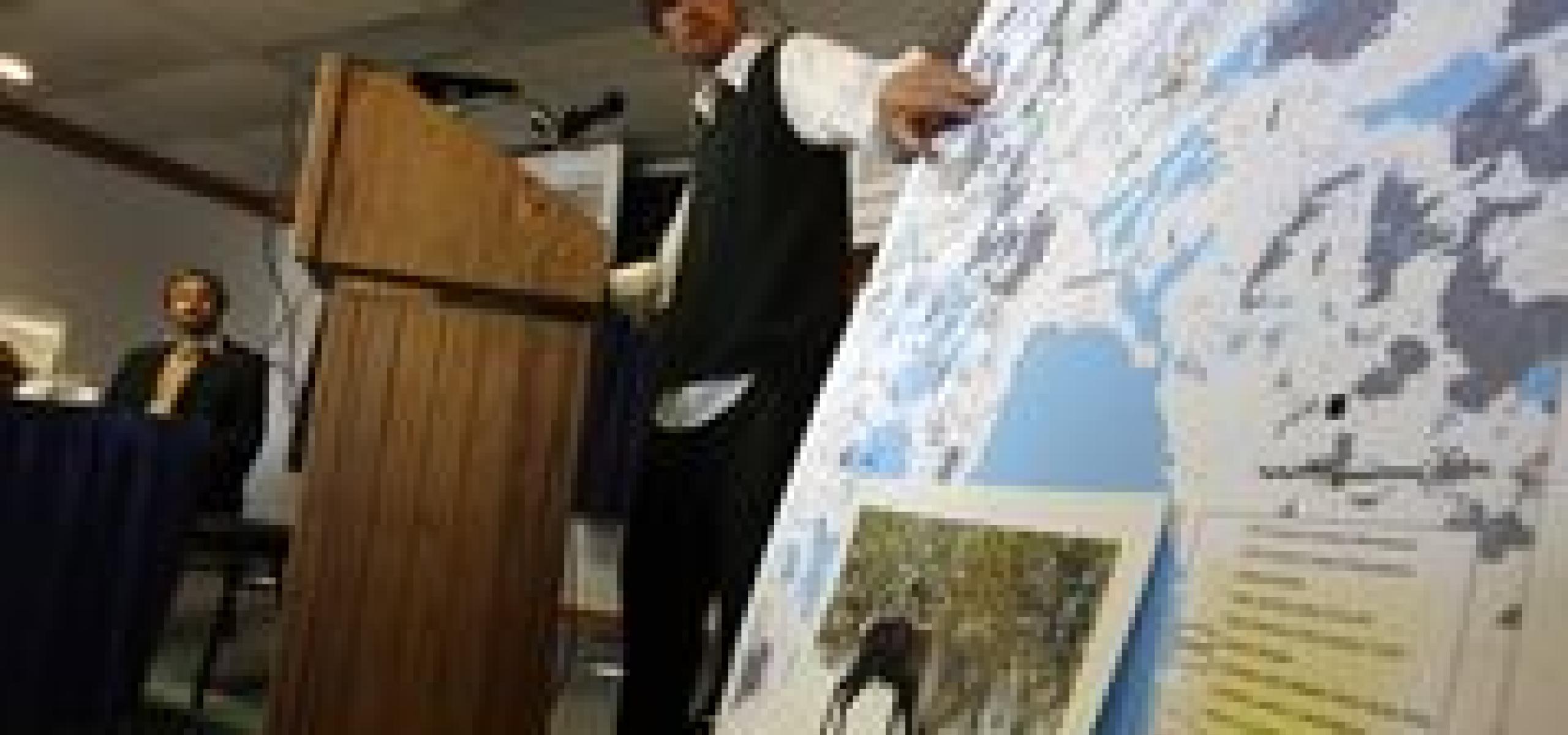 Photo: Eric Reder of Western Canada Wilderness Committee Manitoba points out area where logging threatens caribou. (MIKE.APORIUS@FREEPRESS.MB.CA)
