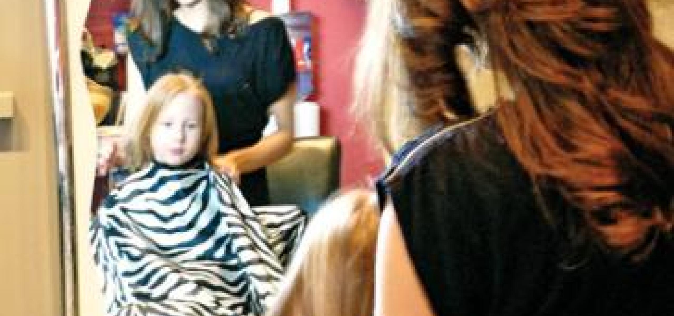 Photo: Young Portia Miller gets ready to have her hair cut by stylist Andrea McDowell. Miller was fulfilling a pledge she made to support the town’s saving of the trees in District Lot 10 — and to help young people with cancer by providing her hair for wigs.