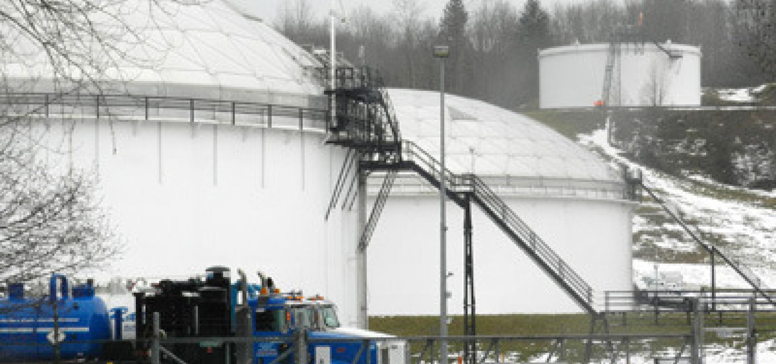 The Abbotsford terminal is part of the Kinder Morgan pipeline system which brings tar sands crude from Alberta via the Trans Mountain pipeline ending at terminals in Burnaby and Washington State. There was a spectacular oil spill in a Burnaby residential neighbourhood near the terminal back in 2007.
