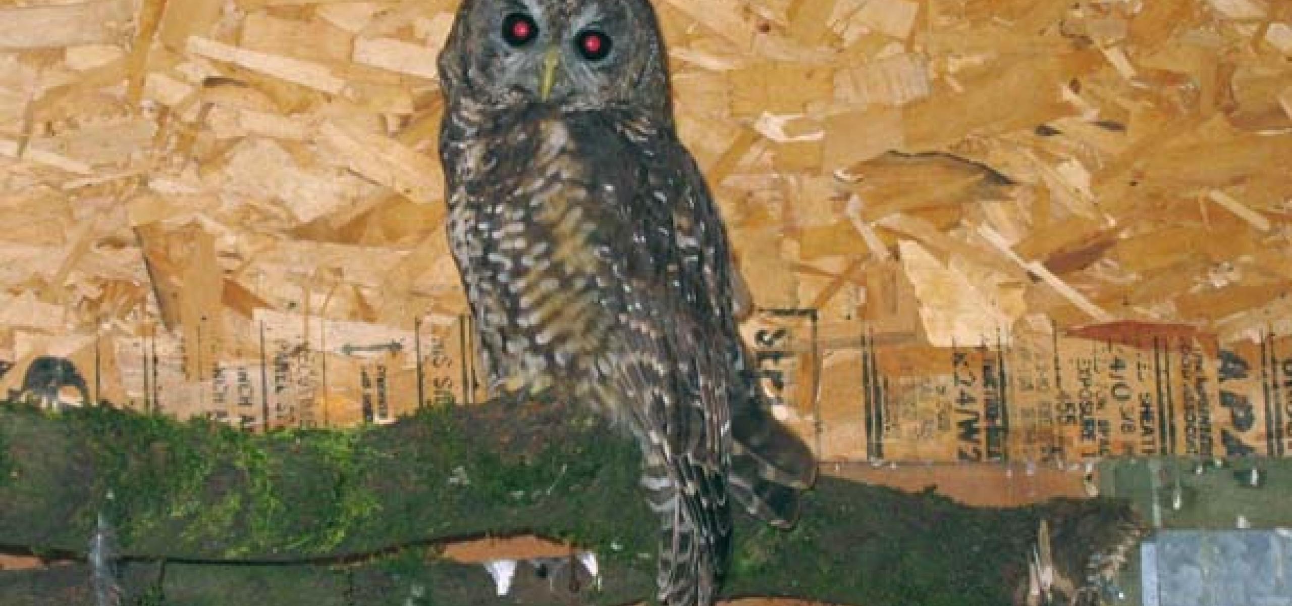 Photo: Northern Spotted Owl held at Mountain View Conservation Society.