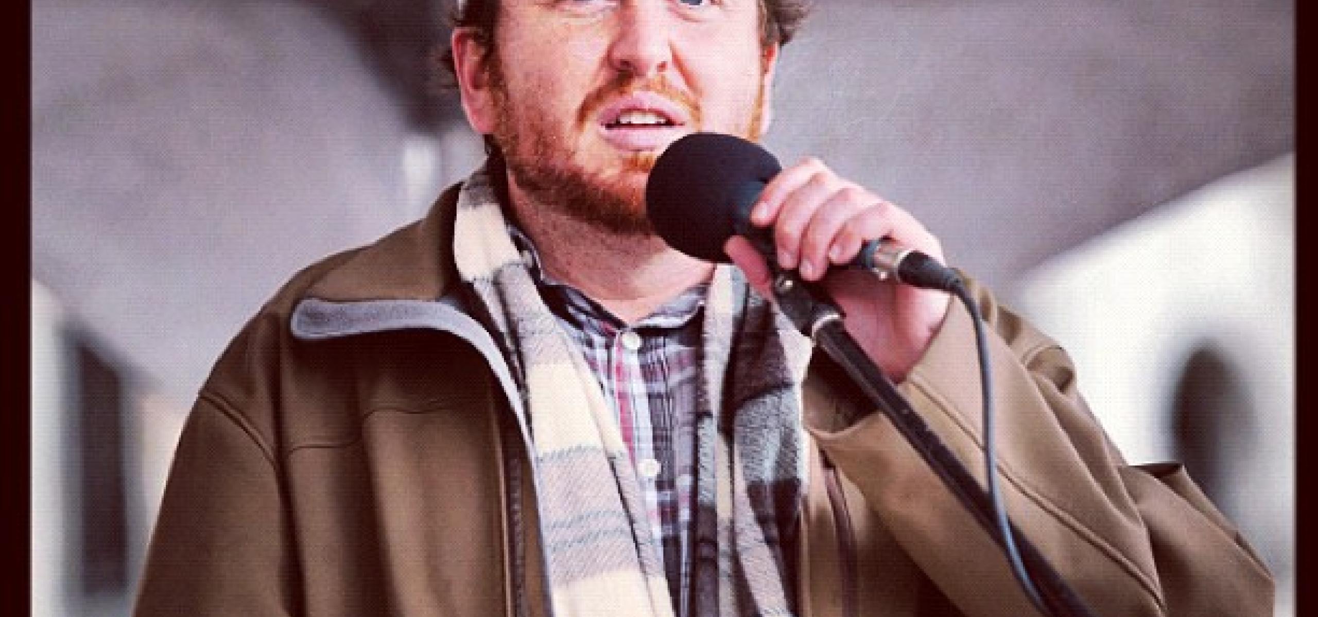 Photo: Ben West speaks on stage at the Defend Our Coast rally in Victoria, BC, October 2012.