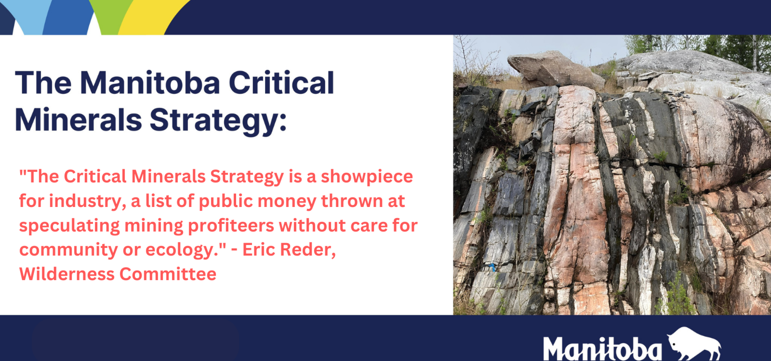 “Simply put, Manitobans should not be fooled into thinking this strategy reflects the best interests of Manitobans. Fending off ecological disasters, preventing climate change, and avoiding costly mine cleanups should be central to any strategy, but you won’t find any of that," said Eric Reder, Wilderness and Water Campaigner for the Wilderness Committee. "The Critical Minerals Strategy is a showpiece for industry, a list of public money thrown at speculating mining profiteers without care for community or ecology.”