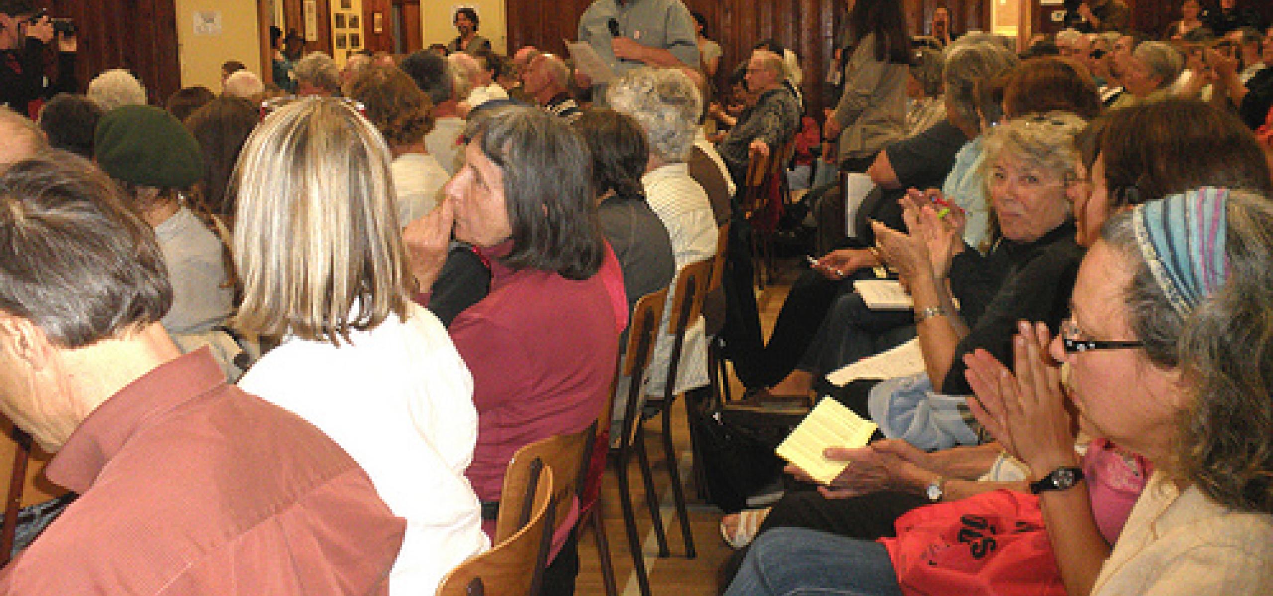 Nearly 600 people crammed into the Filberg Centre on Monday night, over 400 people attended the meeting in Port Alberni on Thursday, and an overflow crowd of over 450 people came to the Union Bay Hall on Friday night. Another 600 people watched the Port Alberni meeting on-line.