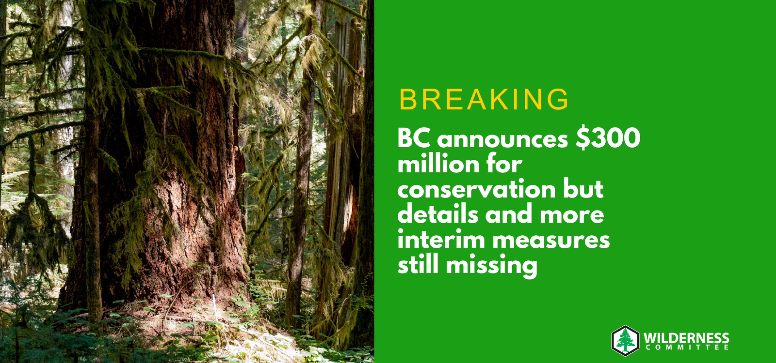 Not included in the announcement were details on conservation targets and what type of ecosystems the government aims to protect, meaning there’s no guarantee the money will go towards conserving ecosystems currently underrepresented in protected areas, such as at-risk old-growth forests. The Wilderness Committee is also concerned the government is focusing on long-term planning without more immediate actions on the ground. The province has not shared details about existing old-growth deferrals, so the public doesn’t know the amount of critically important forests being cut down in the meantime. Also missing are details on how the province will remove areas from resource tenures, such as logging license areas, on a fast enough timeline.