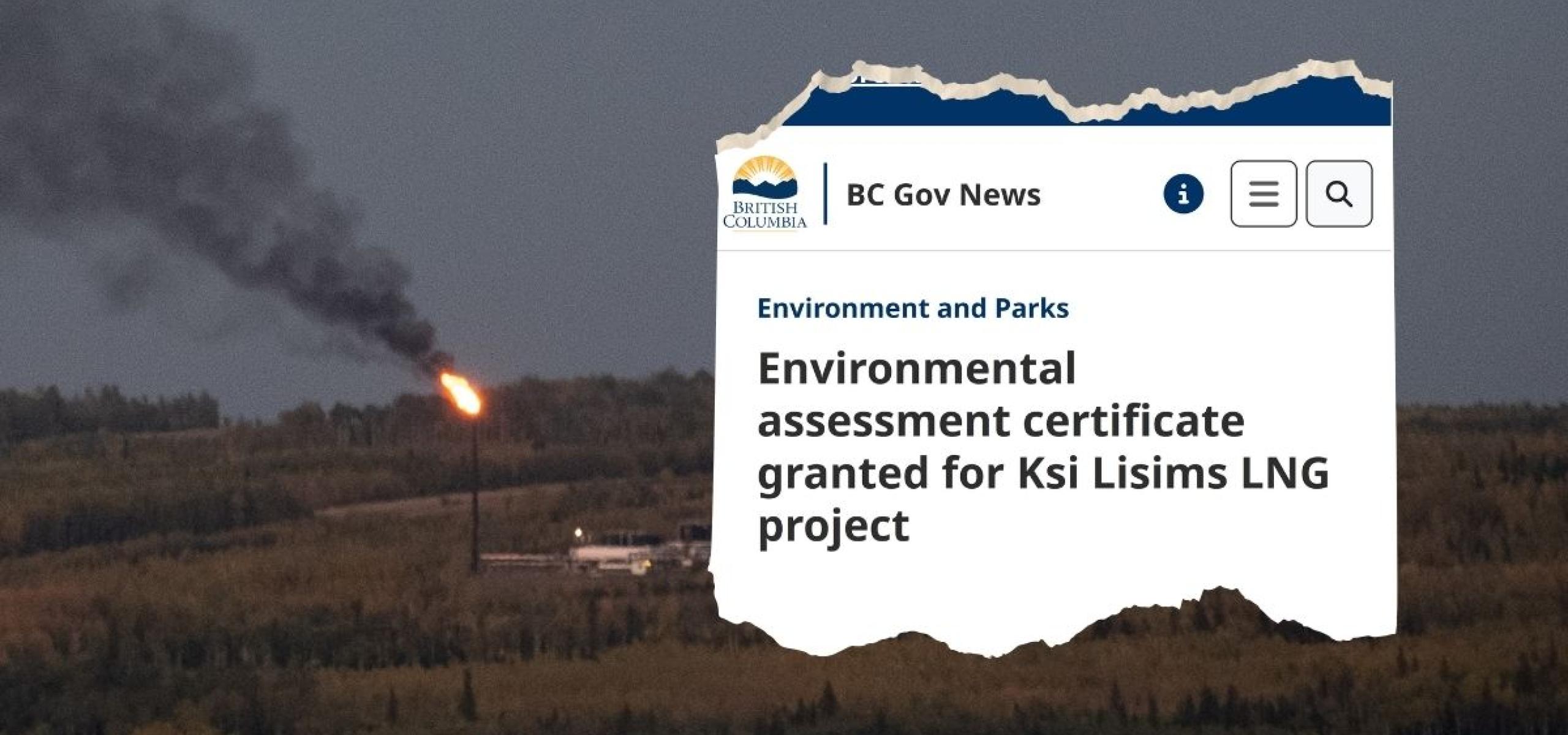 VANCOUVER / UNCEDED xʷməθkʷəy̓əm, Sḵ wx̱wú7mesh AND səlilwətaɬ TERRITORIES — In a move that disregards mounting public opposition and concerns from community and environmental groups, B.C.’s Minister of Environment and Parks, Tamara Davidson, and Minister of Energy and Climate, Adrian Dix, along with federal Minister of Environment and Climate Change, Julie Dabrusin, have approved the Ksi Lisims LNG export facility, B.C.’s latest fossil fuel mega-project.