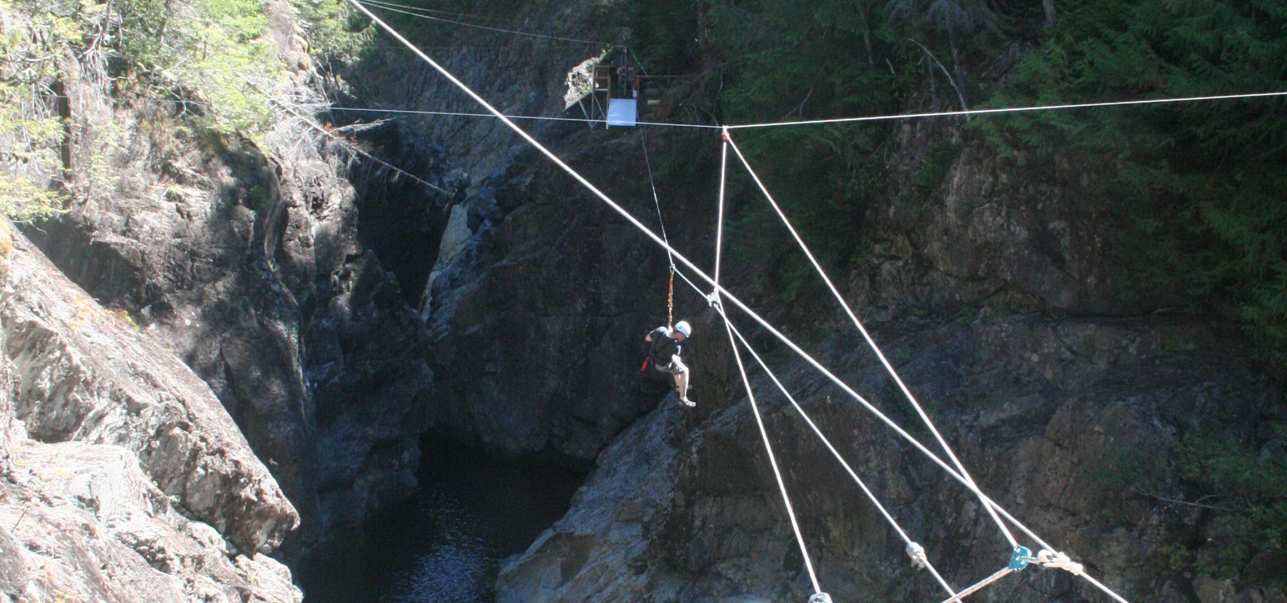 Rouleau had tried out a zipline in Costa Rica, and it had occurred to him that Clayoquot's ancient rainforest would be a great setting for a zipline. On one of his float plane flights, Rouleau was forced by cloud cover to fly low over the Kennedy canyon. "I saw the river all white and boiling, and it just touched me: this is the spot we could put in our own zipline."