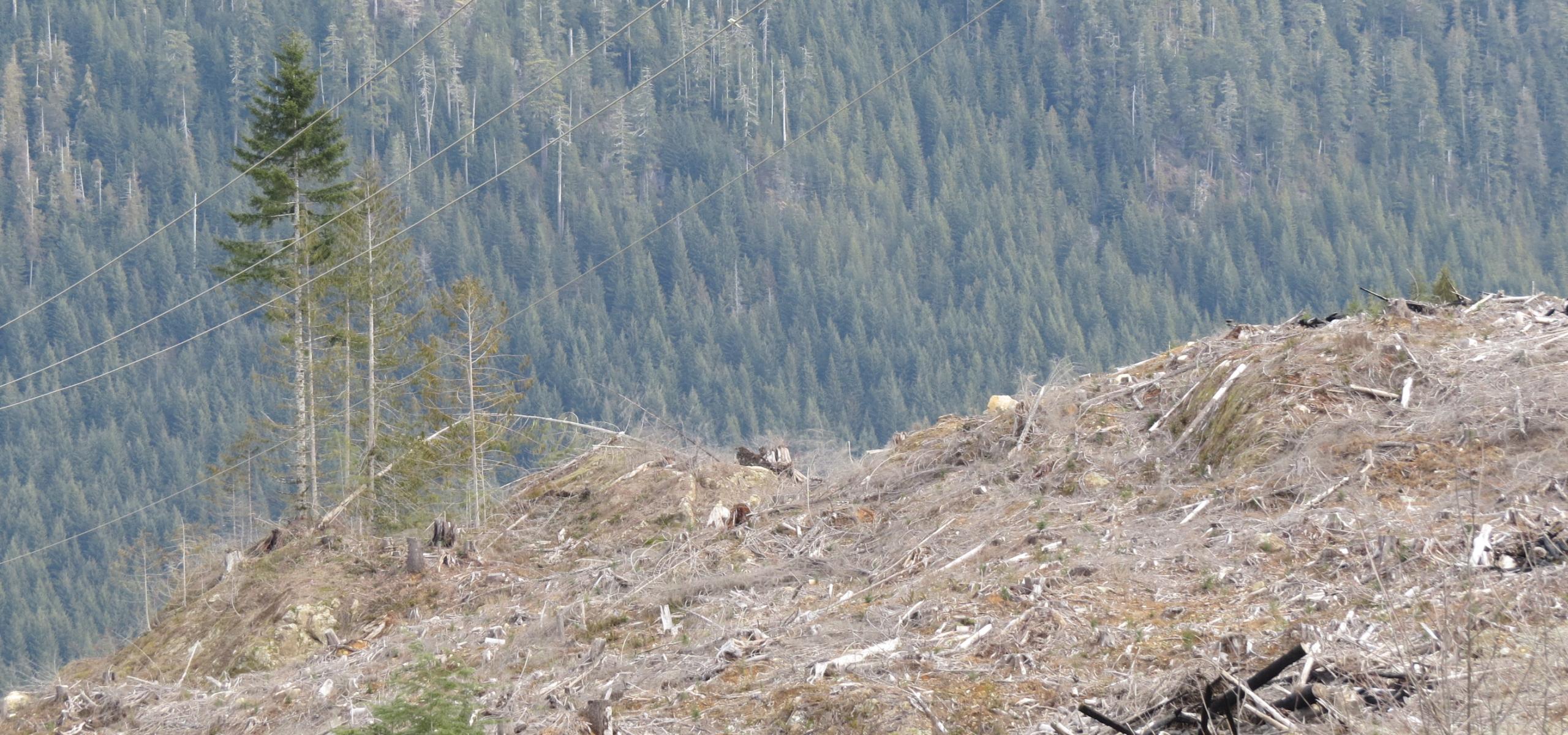 Photo: Clearcut logging in TFL 44, near Bamfield, Vancouver Island, BC (Torrance Coste)