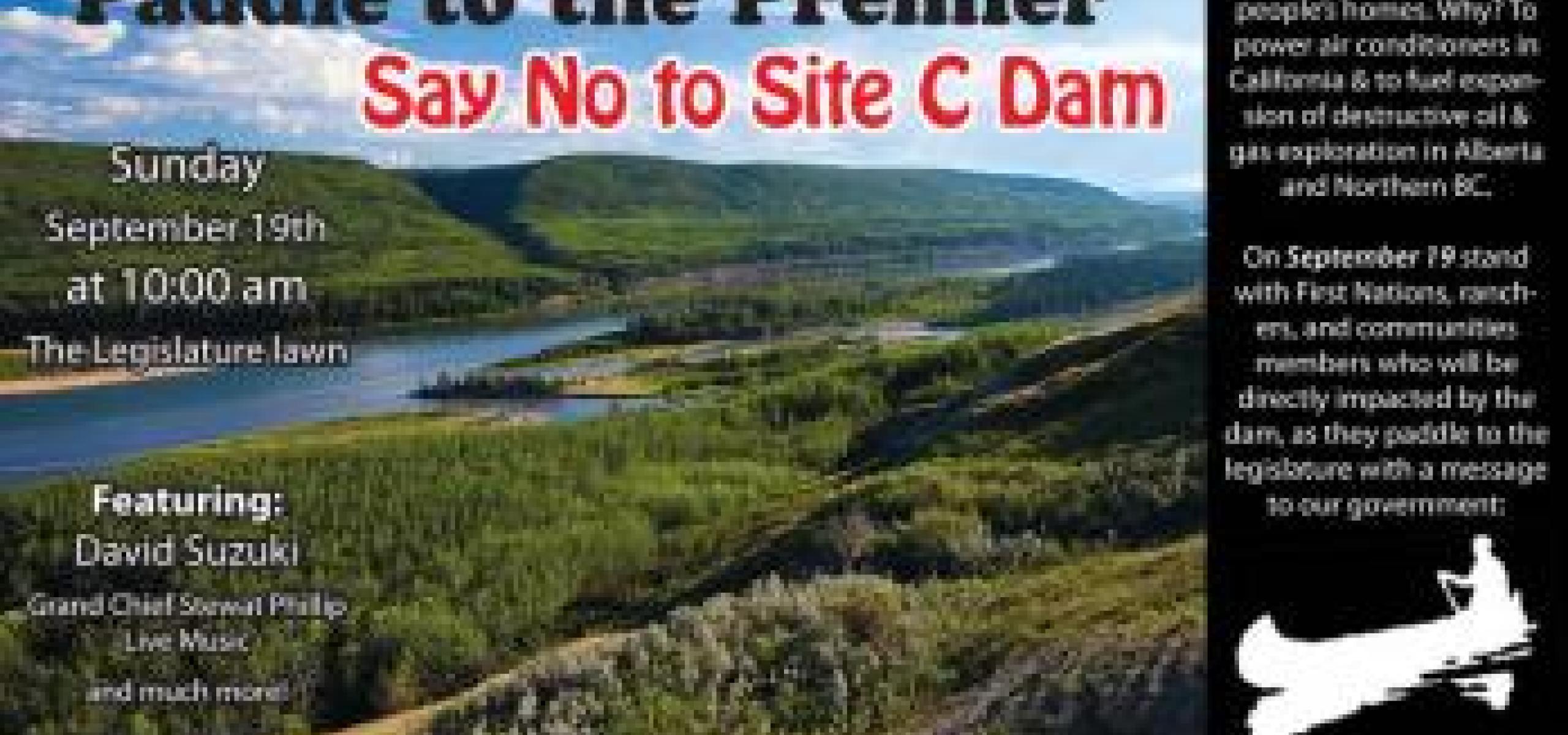 What: Press Event Event organized by the Wilderness Committee, Peace Valley Environment Association, Sierra Club BC, Doig River First Nations, Prophet River First Nations, West Moberly First Nations, and Halfway River First Nations.Who: 23 First Nations communities from BC, Alberta and the Northwest Territories, plus several environmental organizations and residents of the Peace Region will speak about their campaign to send a strong message to the BC government that the proposed Site C hydro electric dam must not proceed.