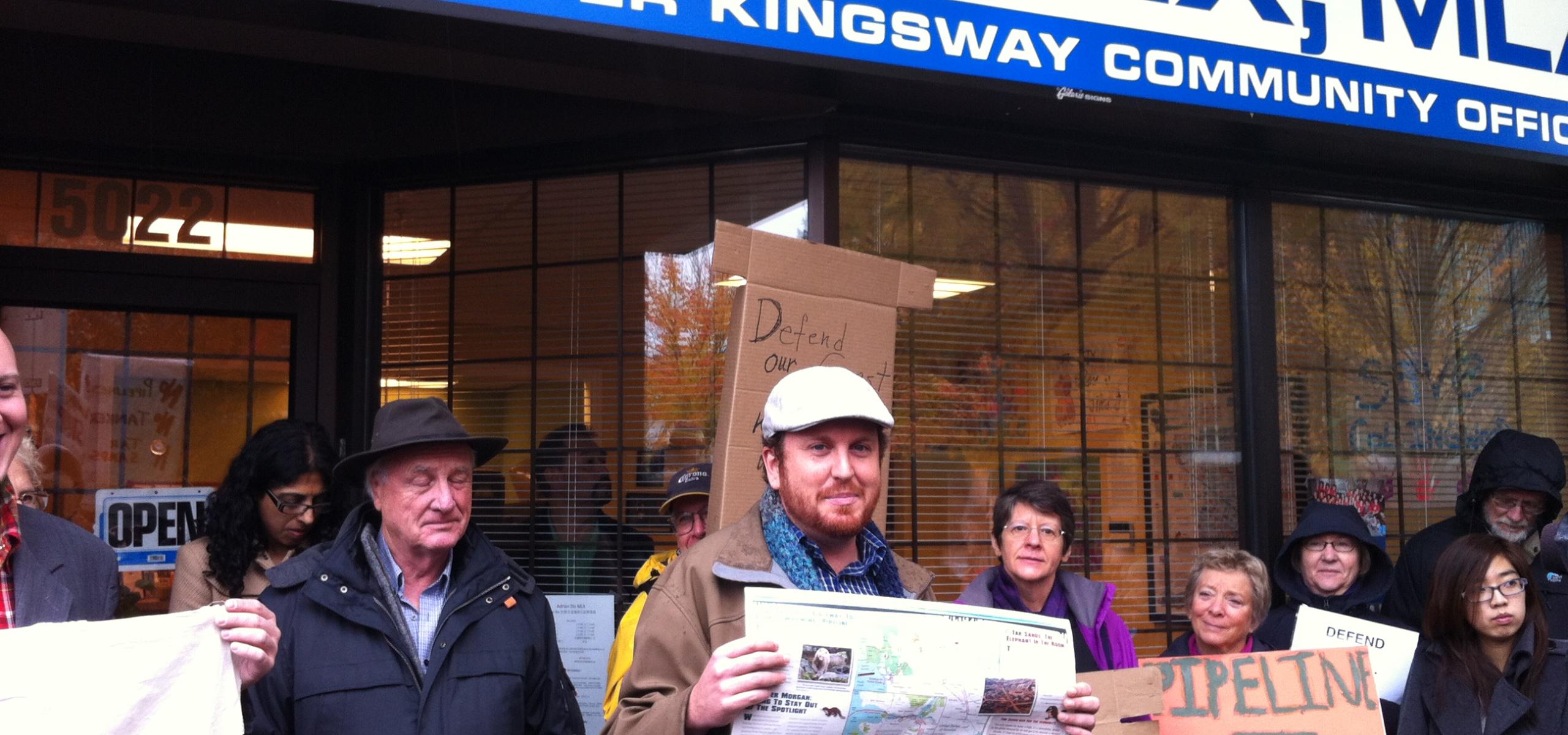 "We're trying to, you know, sort of draw attention to the fact that all of these pipelines are a bad idea," said Ben West, a spokesman for the Western Canada Wilderness Committee, who is co-ordinating a protest at the office of NDP Leader Adrian Dix.