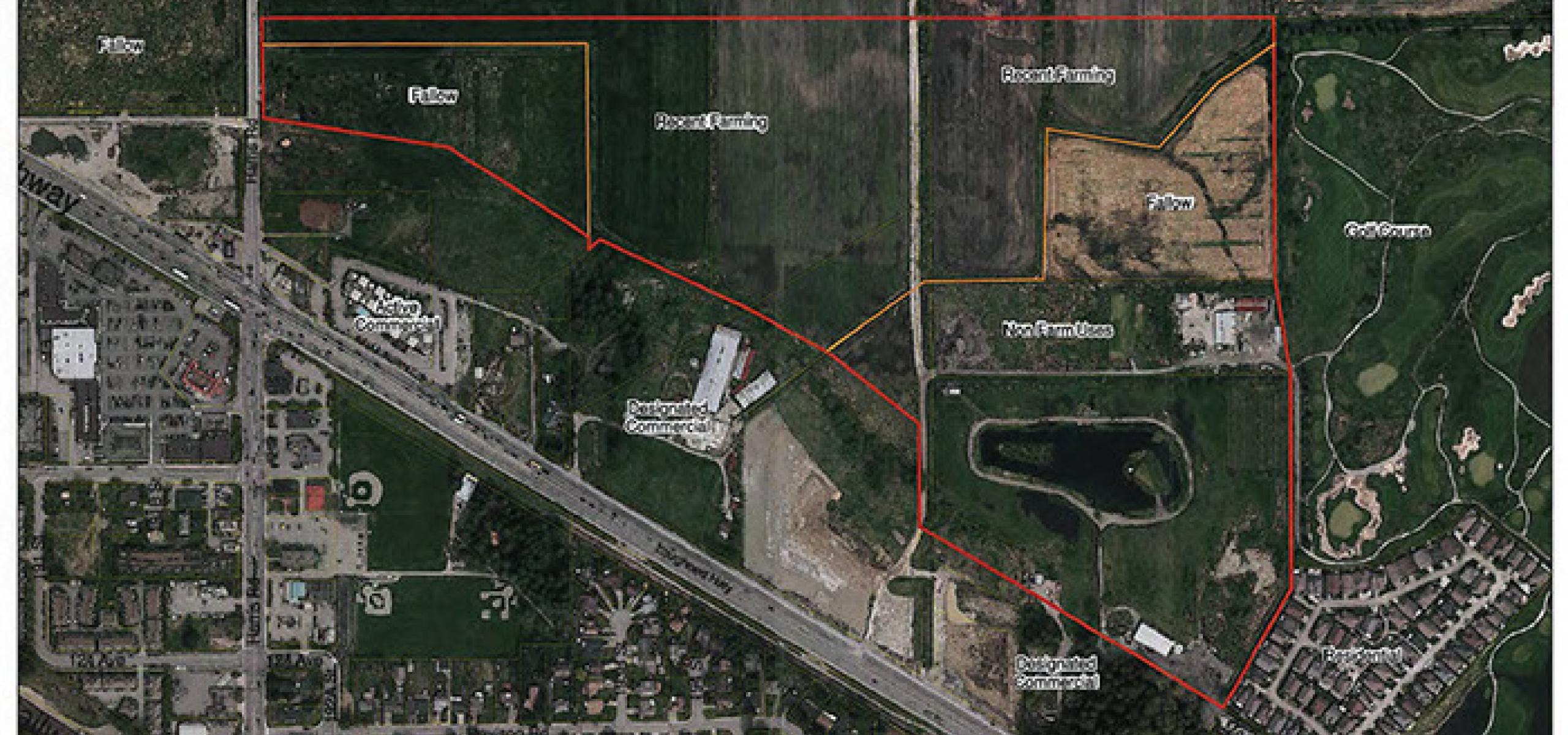 Of the land being considered for development, only around 17.5 hectares (43 acres) are zoned highway commercial.