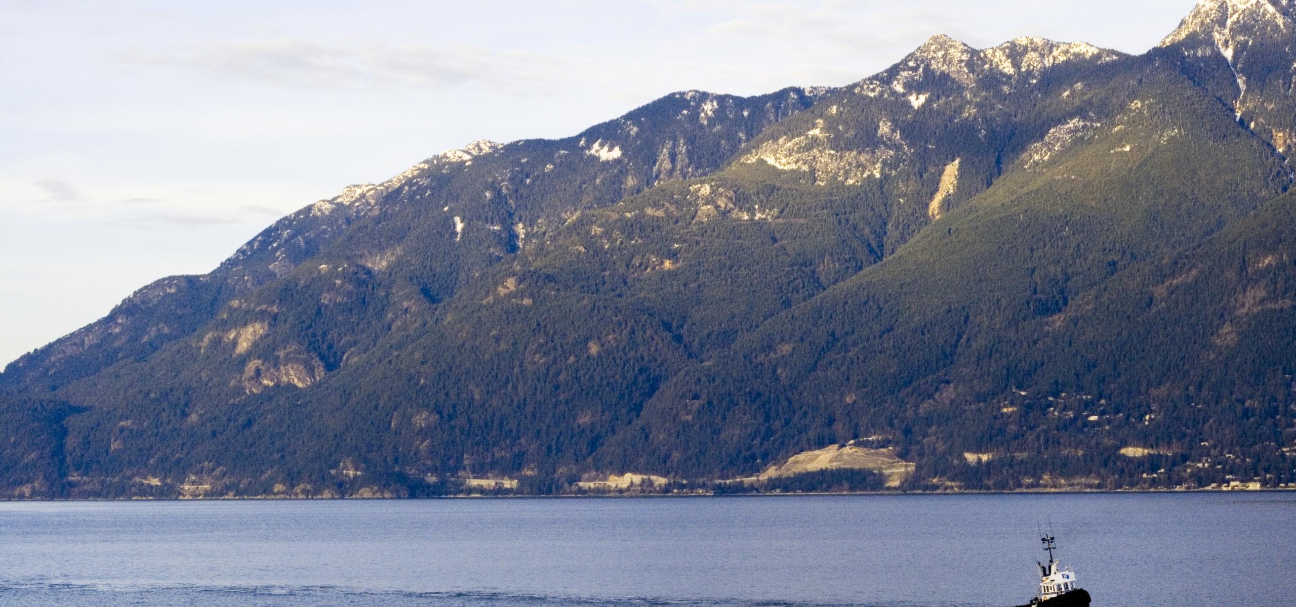 Photo: Tug boat towing logs in Howe Sound, BC (Wikimedia Commons)