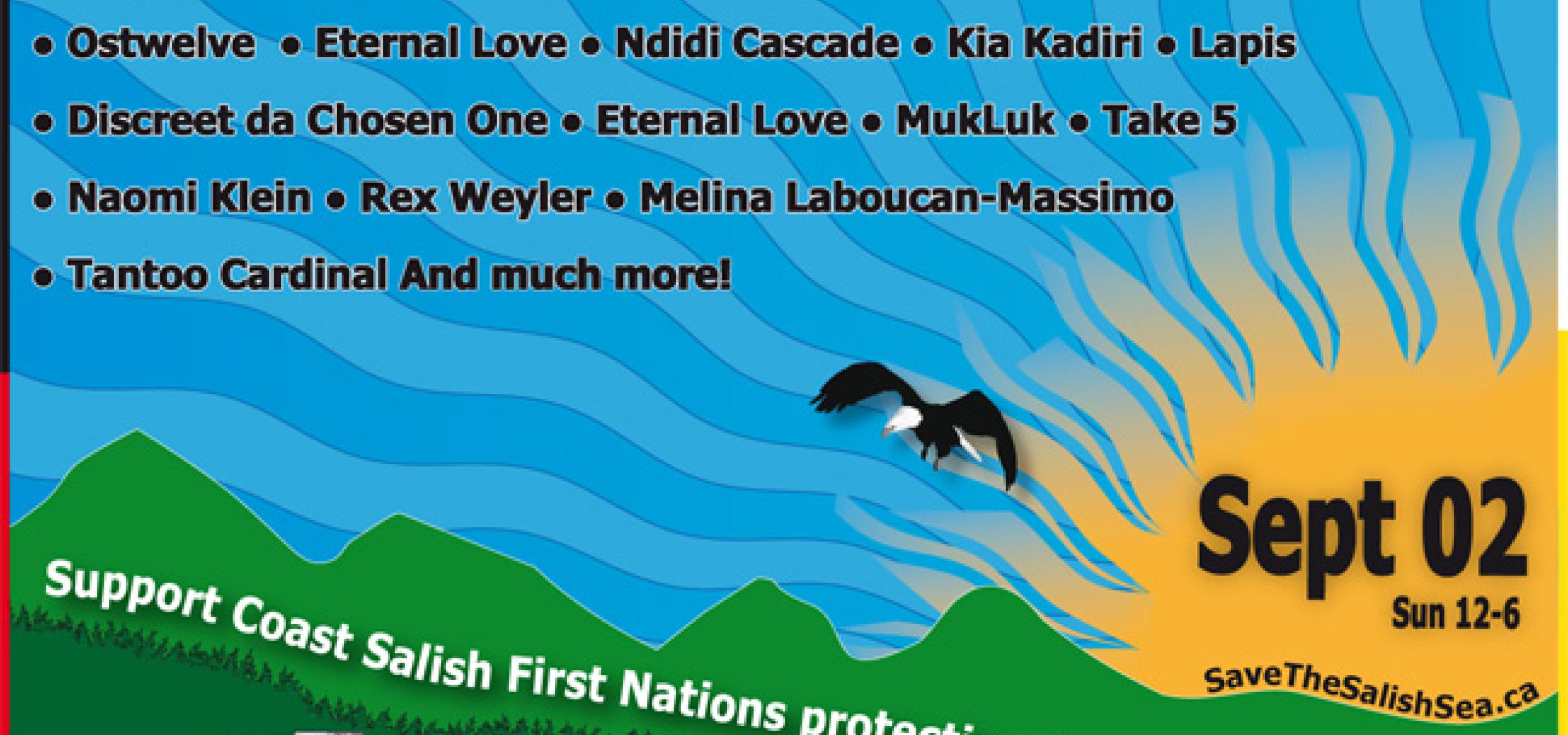 VANCOUVER – This afternoon, local groups are hosting the Save the Salish Sea Festival—a family-friendly concert in support of Coast Salish First Nations opposed to Kinder Morgan's new Trans Mountain pipeline project and increased oil tanker traffic in the Burrard Inlet.