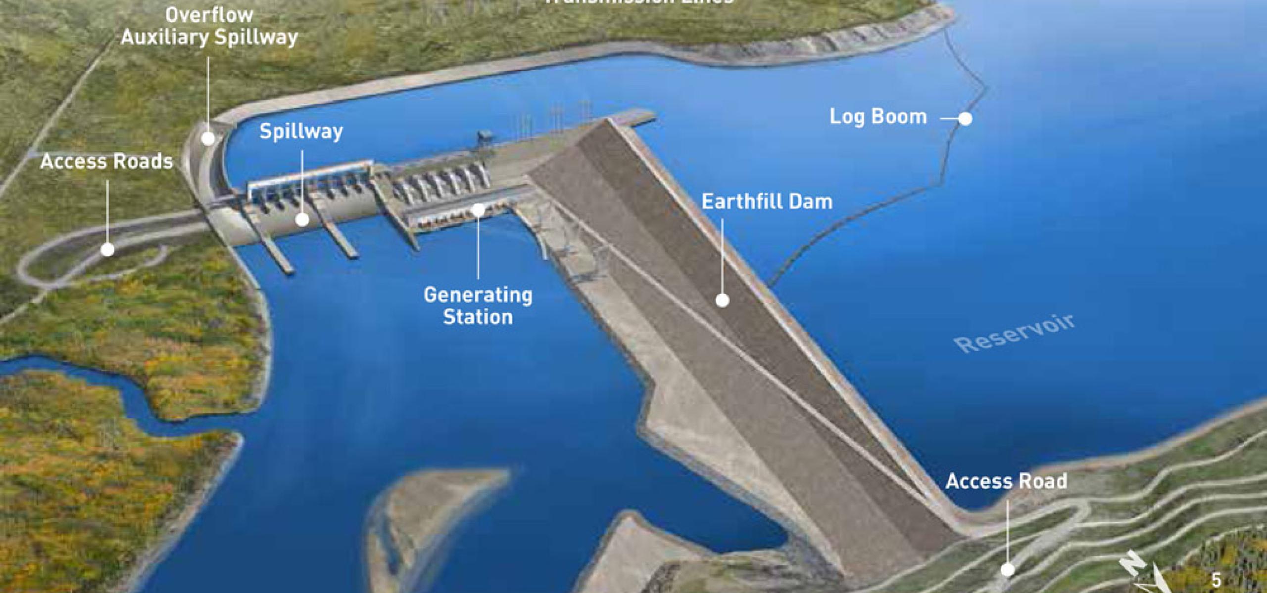 Measuring 60 metres high and over one kilometre long, the third dam on the Peace River in northeastern B.C. would create a 83-kilometre-long reservoir flooding 5,557 hectares of land. With 1,100 megawatts of capacity, it would generate enough electricity to power 450,000 homes per year.