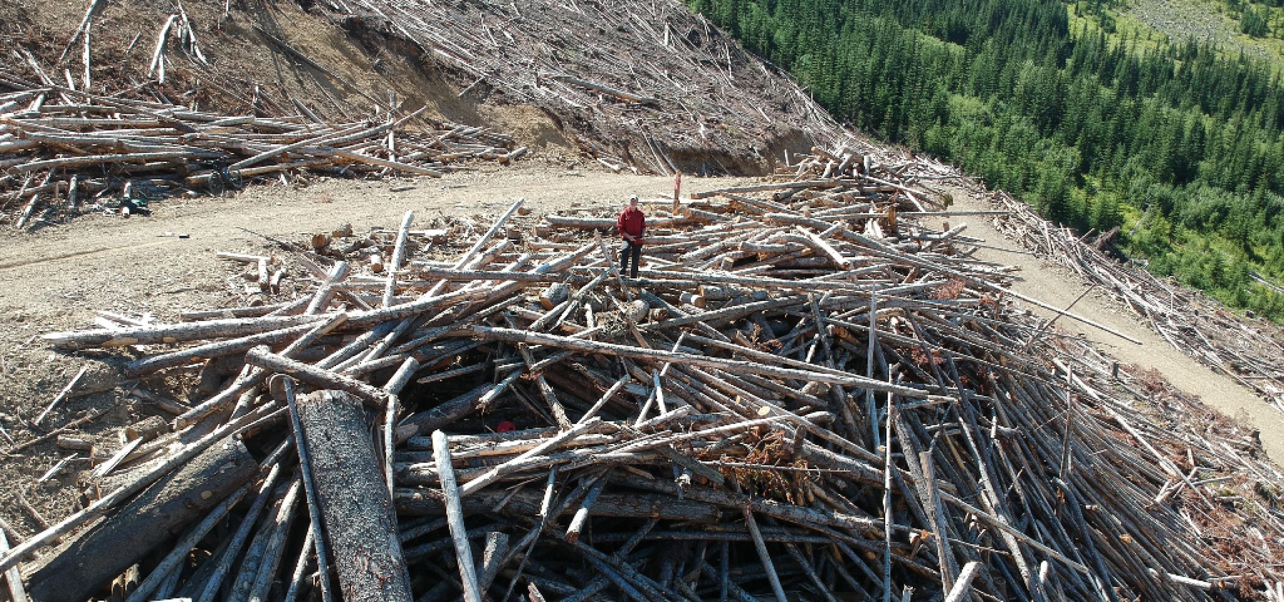 The wood waste piles bristled like massive porcupines with mangled tree trunks for quills. I struggled to clamber to the top of one of them and wondered, what was the reason for clearcutting the forest only to leave so many of the felled trees in these big piles?