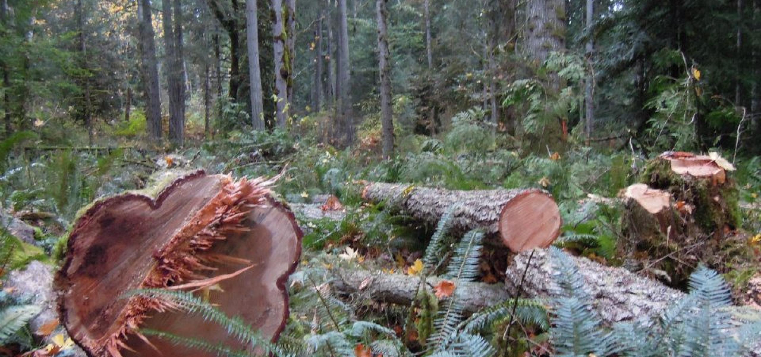 A short distance from the riparian zone we found the first cut. The company has stated that they are not cutting any of the old growth, something the giants lying on the ground would likely dispute. Our guides took us further in to the forest where we found Cedars and Douglas firs trees over 200 years old that had been cut down.