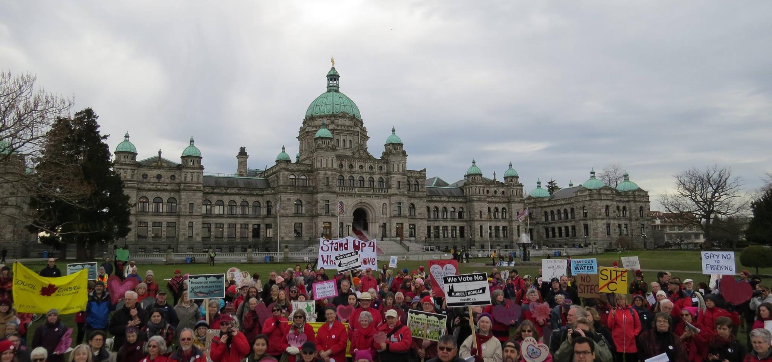 Angry protesters aren’t feeling the love this Valentine’s Day as they gather outside the B.C. Legislature.