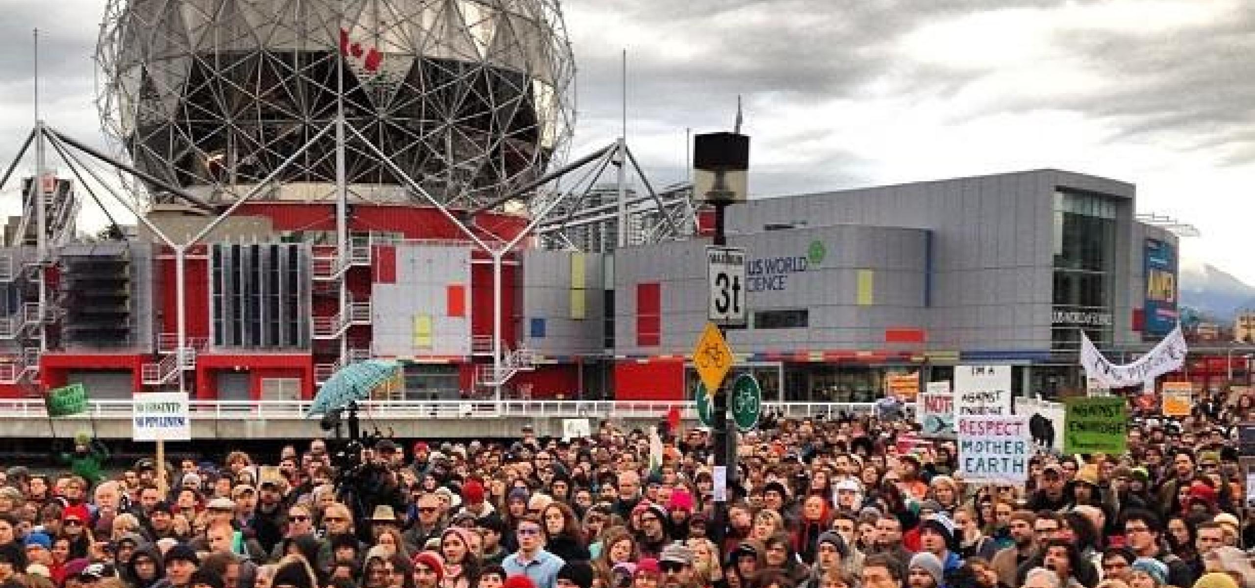 Photo: Crowds flocked to Science World in Vancouver during the Defend Our Climate National Day of Action in November 2013. (Zack Embree)