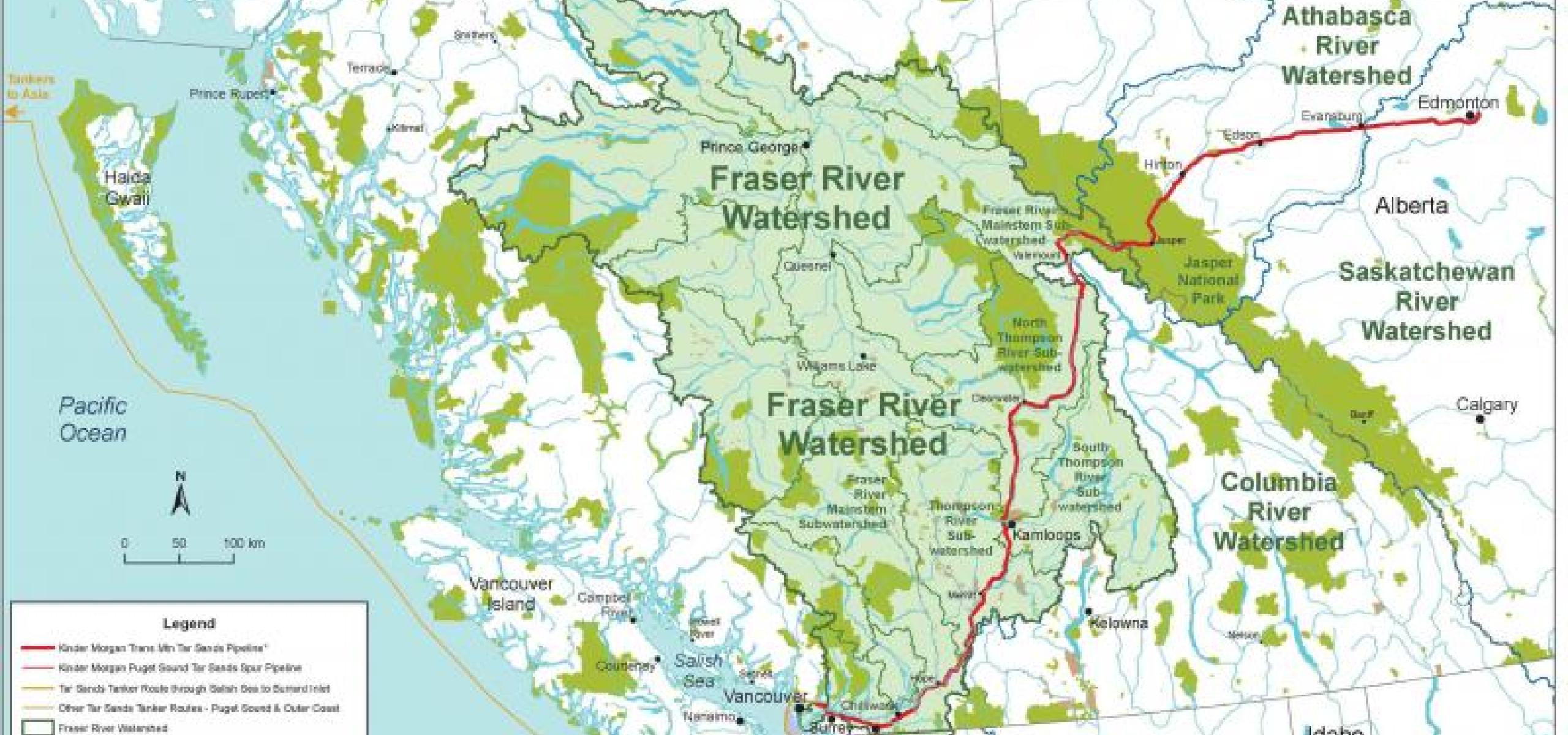 For a detailed view of the Kinder Morgan route map through BC -- including the Fraser River Watershed -- visit http://wildernesscommittee.org/KMmap