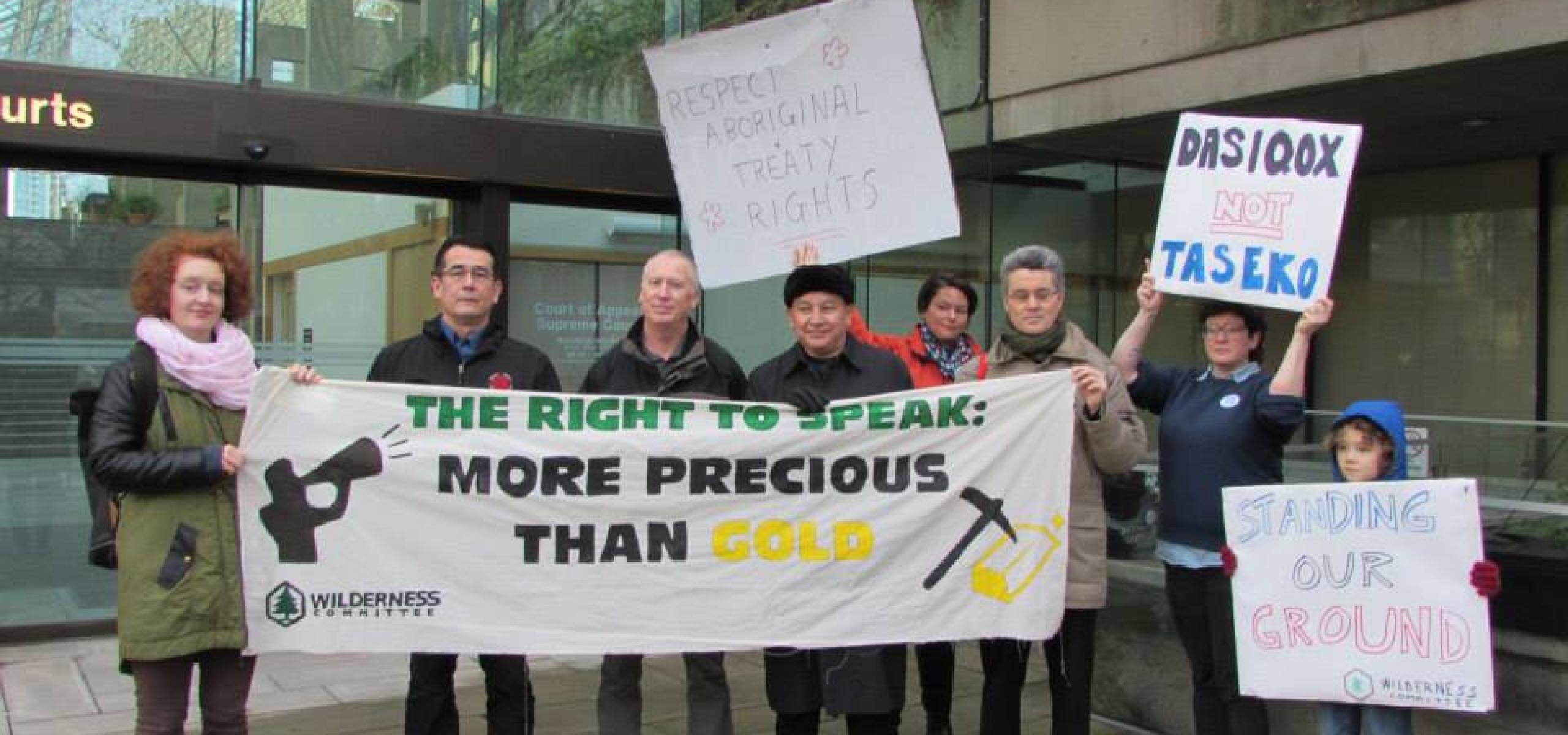 VANCOUVER – The Wilderness Committee will return to court on Tuesday, March 31st for closing arguments in the defamation lawsuit brought by Taseko Mines Limited. A delegation from the Tsilhqot’in Nation will be traveling to Vancouver to attend a gathering of friends and supporters on the steps of the BC Supreme Court.