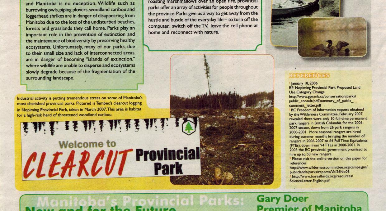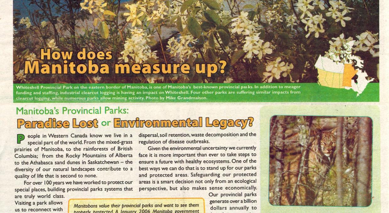 A scan of a 2007 report that asks "Manitoba's Provincial Parks: Paradise Lost or Environmental Legacy?"
