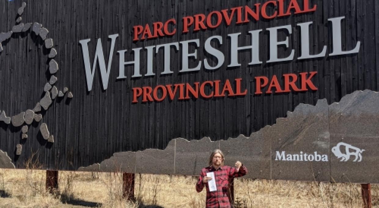 Wilderness Committee campaigner Eric Reder protests Manitoba's park pass requirement