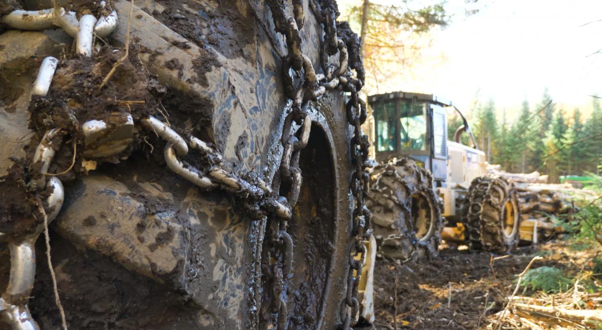 Mud, sticks and a few logs, with what's left of the forest in the background.