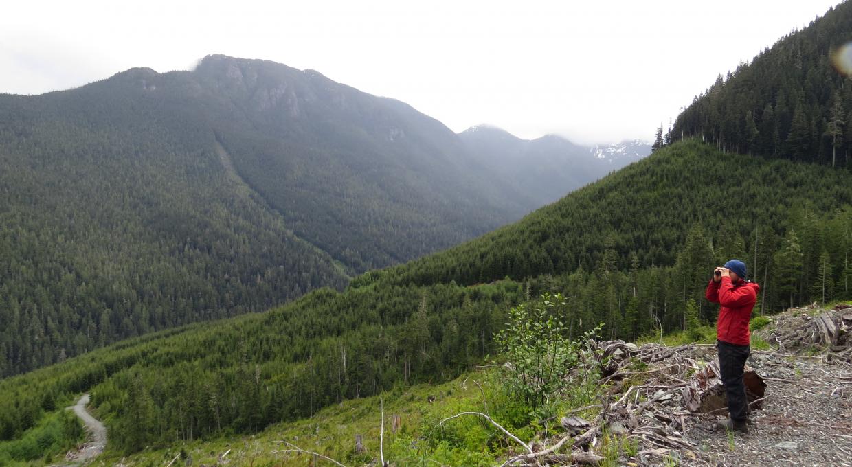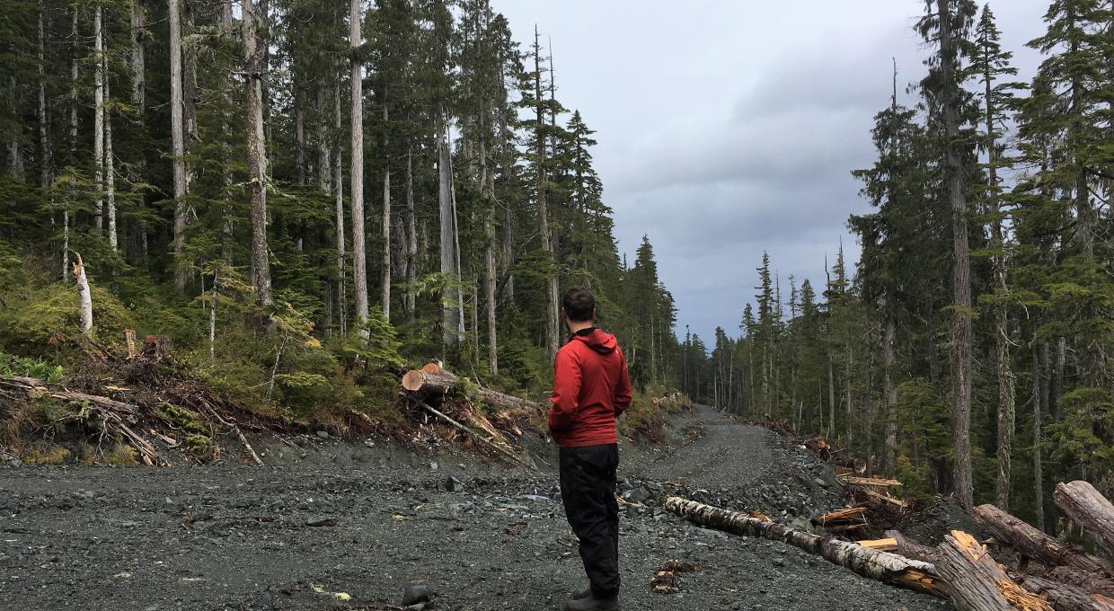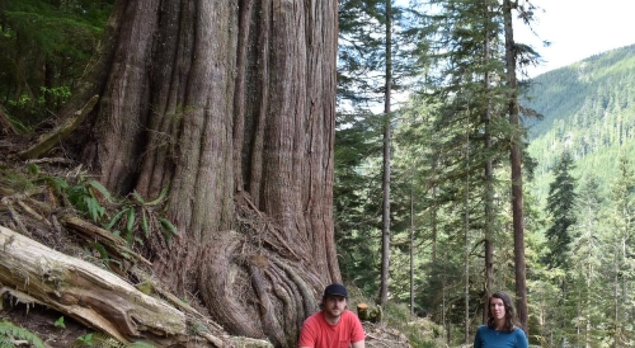 The Wilderness Committee's Torrance Coste and Em Hoffpauir in Caycuse Valley documenting old-growth logging