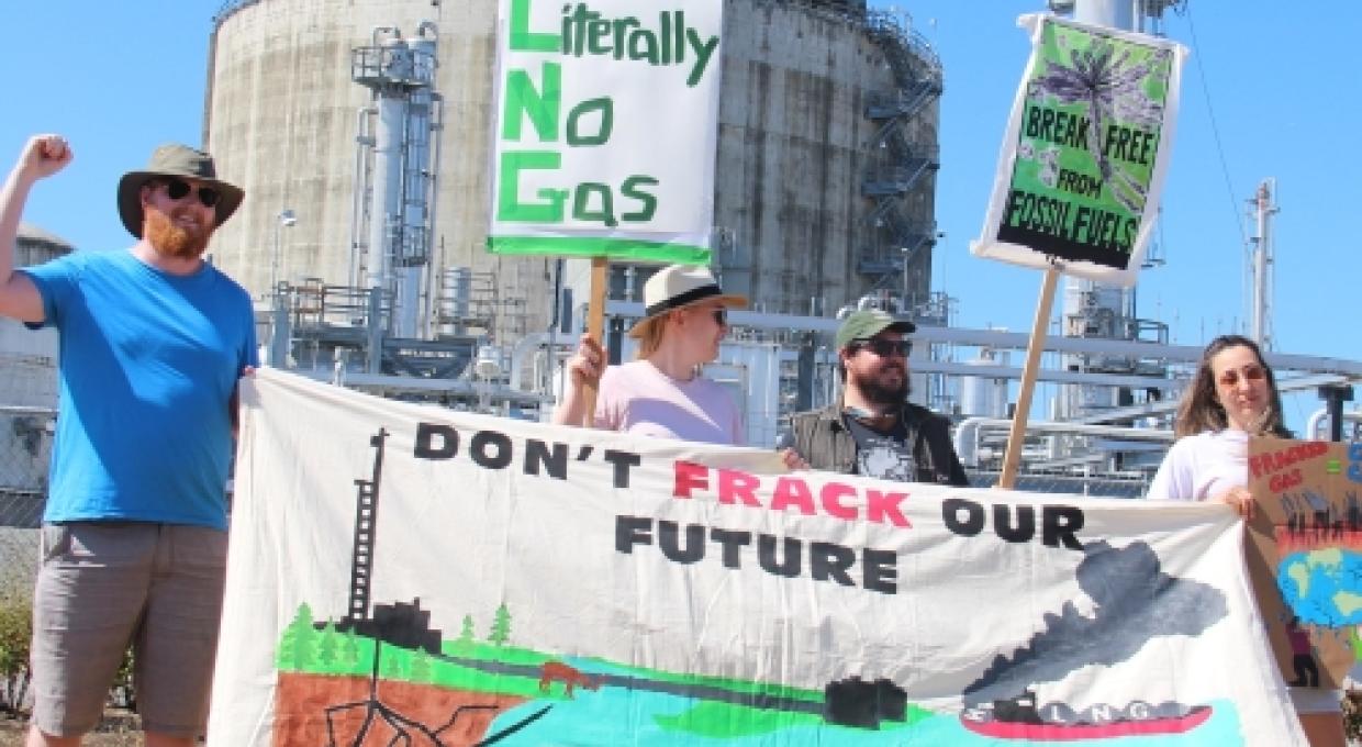 Wilderness Committee protest in front of Tilbury LNG on the Fraser River.