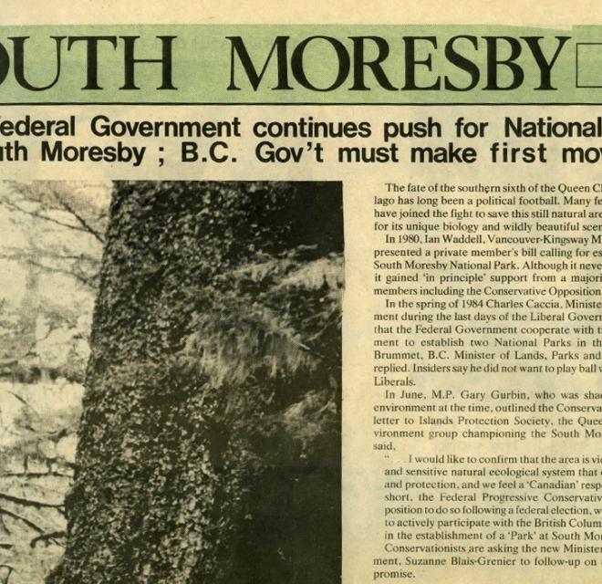 This is a 1984 Wilderness Committee education report about the growing support within the federal government of Canada for the South Moresby area to be granted some kind of park status. However, the government of BC continued to push hard for the area to be logged. The campaign met with success in 1987 when the Gwaii Haanas National Park Reserve and Haida Heritage Site was designated. See our History and Achievements page.
