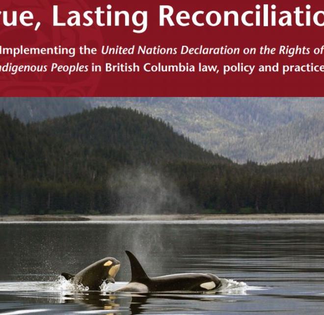 THE IMPLEMENTATION OF THE UNITED NATIONS DECLARATION ON THE RIGHTS OF INDIGENOUS PEOPLES (UN Declaration) is a central political and public policy issue around the world, and more dialogue needs to take place on how the UN Declaration can and should be put into action. This report helps to fill the gap by advancing discussion on the implementation of the UN Declaration in British Columbia. It challenges politicians, officials, advisors, experts and the public to explore a range of avenues about how the UN Declaration can be given meaning on the ground in constructive, impactful and practical ways. Inspiring this report is a strong belief that there exists significant unfinished business to address the legacy of colonization of Indigenous peoples in Canada, and that addressing this legacy requires significant changes to legal and policy frameworks.