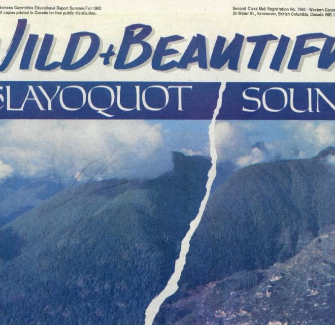 This is a 1992 Wilderness Committee education report about the campaign to protect Clayoquot Sound, which is centrally located on the west coast of Vancouver Island and is one of the most scenically beautiful and awe-inspiring areas in the world. It's 260,000 ha of forested mountain slopes, valleys and islands comprises the largest remaining expanse of temperate ancient rainforest on Vancouver Island and one of the largest tracts in the world. Because much of Vancouver Island had already been heavily logged, the pressure to clearcut the rest of Clayoquot Sound's wilderness was very is strong in 1992. Government processes such as the Clayoquot Sound Sustainable Development Strategy (CSSDS) had failed to resolve the conflicts between the multinational logging companies and the environmentalists in the area.