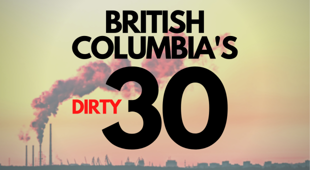 Introducing BC's Dirty 30 in text on a background of a gas well flare stack.